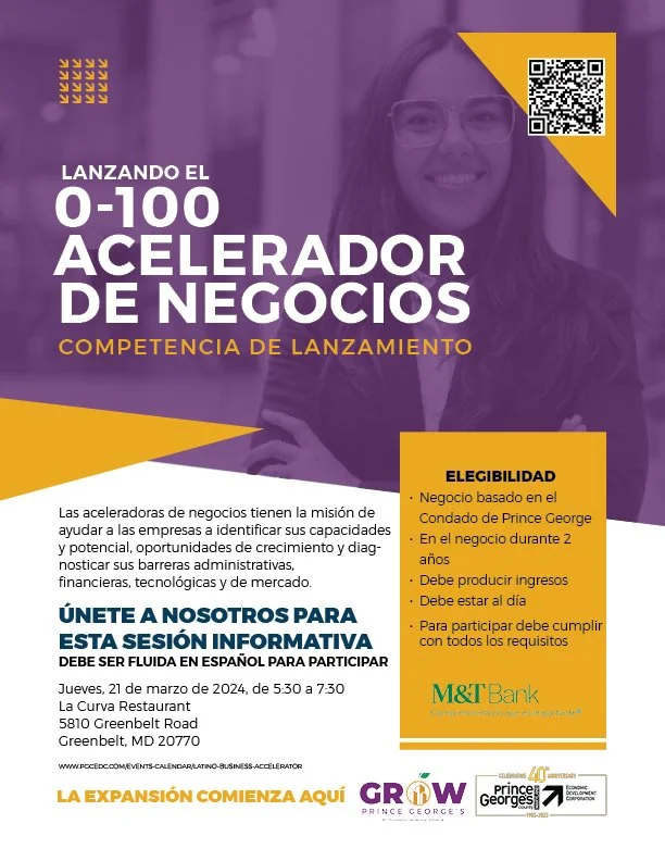 Prince George’s Economic Development Corporation is partnering again with M&T Bank for the Latino Business Accelerator Program. Selected small business owners will participate in the business accelerator program designed to provide entrepreneurs with the guidance and skills needed to build strong companies, spur economic growth in Prince George’s County and help build generational wealth for their families.