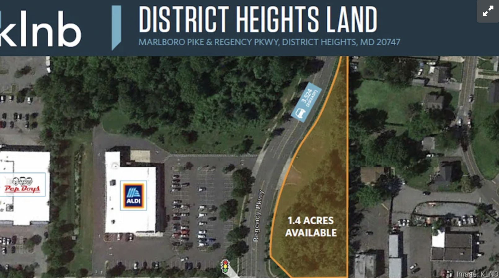 As reported on April 6, 2026 by the Washington Business Journal, a 1.4-acre parcel in District Heights owned by Aldi has been listed for auction with an opening bid of $230,000. The site is being marketed as excess land, creating an opportunity for new ownership and potential redevelopment.